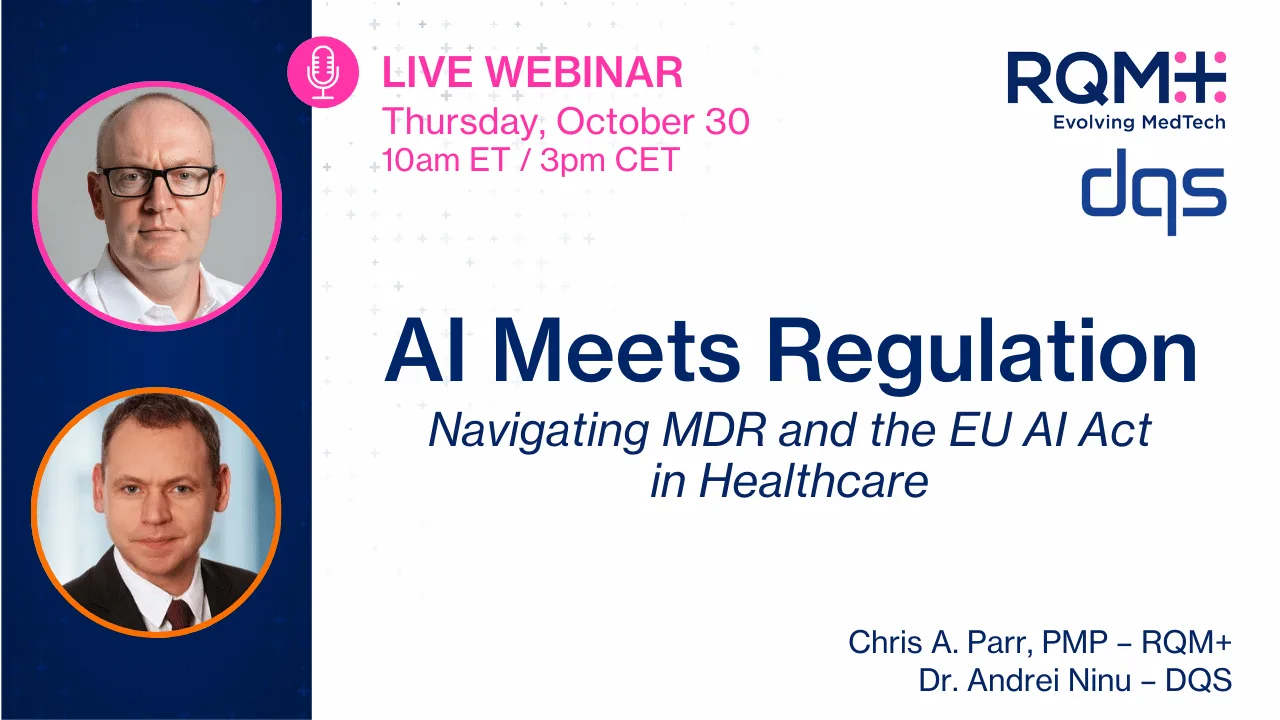 In this live webinar, experts from DQS and RQM+ are joining forces to demystify the intersection of MDR and the AI Act.