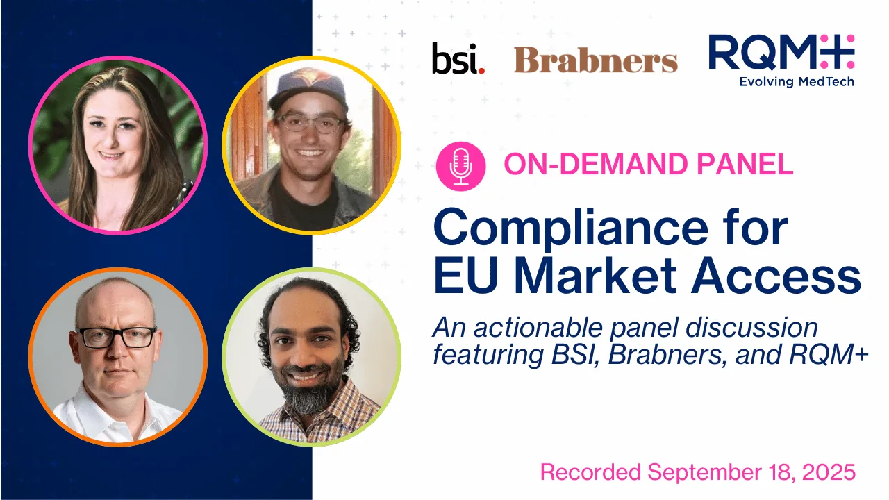 In this RQM+ Live! panel discussion, experts from BSI, Brabners, and RQM+ map how sectoral, horizontal, and national requirements fit together, how notified bodies assess them, and how to build an evidence-based path to EU market access.