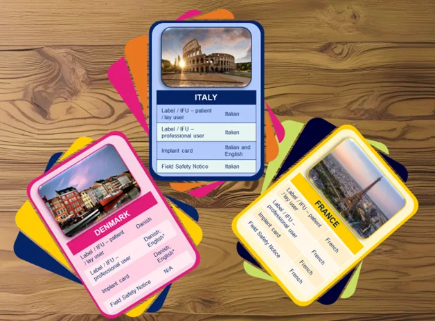 The Member States are not obliged to legally specify the languages(s) to be used. Sensibly, to avoid any confusion in the implementation of this requirement, and then the assessment of conformity against this requirement, many Member States have published clear legislation or guidance on their official language(s) to be used as part of labelling and information for use. Some Member States have gone one step further and clarified that devices intended solely for use by healthcare professionals can be provided in one language (e.g. English) whilst devices intended for use by non-professionals must be provided in at least one of the native languages of that Member State. Keeping track of all that can be a challenge. Thankfully, the European Commission have published reference documents for the MDR and IVDR 6, detailing all of the national provisions where Member States have opted for legally defining the language requirements for medical device manufacturers. This covers not just the labelling, instructions for use and the implant card, but also the Declaration of Conformity, Technical Documentation and Field Safety Notices (See examples in Figure 1).