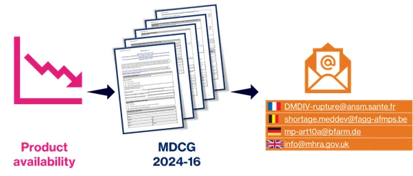 Regulation (EU) 2024/1860 introduced Article 10a to the EU MDR and IVDR regarding the notification of interruptions in the supply of medical devices and the discontinuation of medical devices. Whilst the text of Article 10a does not strictly rely upon national laws for implementation, it is similar to the vigilance system until such time that EUDAMED is operational. By that, it is meant that the legal requirement involves a notification to the competent authority of the Member State where the device manufacturer, or its authorised representative, is established. Each competent authority must then establish, and communicate, how they wish to receive these notifications. Some have established elements of this in national law 16, 17, whilst others have simply communicated this via their website 18-20. The publication of the notification template 21 provides a consistent format for the notifications, and many competent authorities have set-up specific email addresses to receive the notifications (See Figure 3). As well as communicating the notification to the other affected competent authorities (as per Article 10a (2)), it is assumed that each competent authority then has their own process for how to manage such a notification in their own territory depending on the structure of their healthcare system.